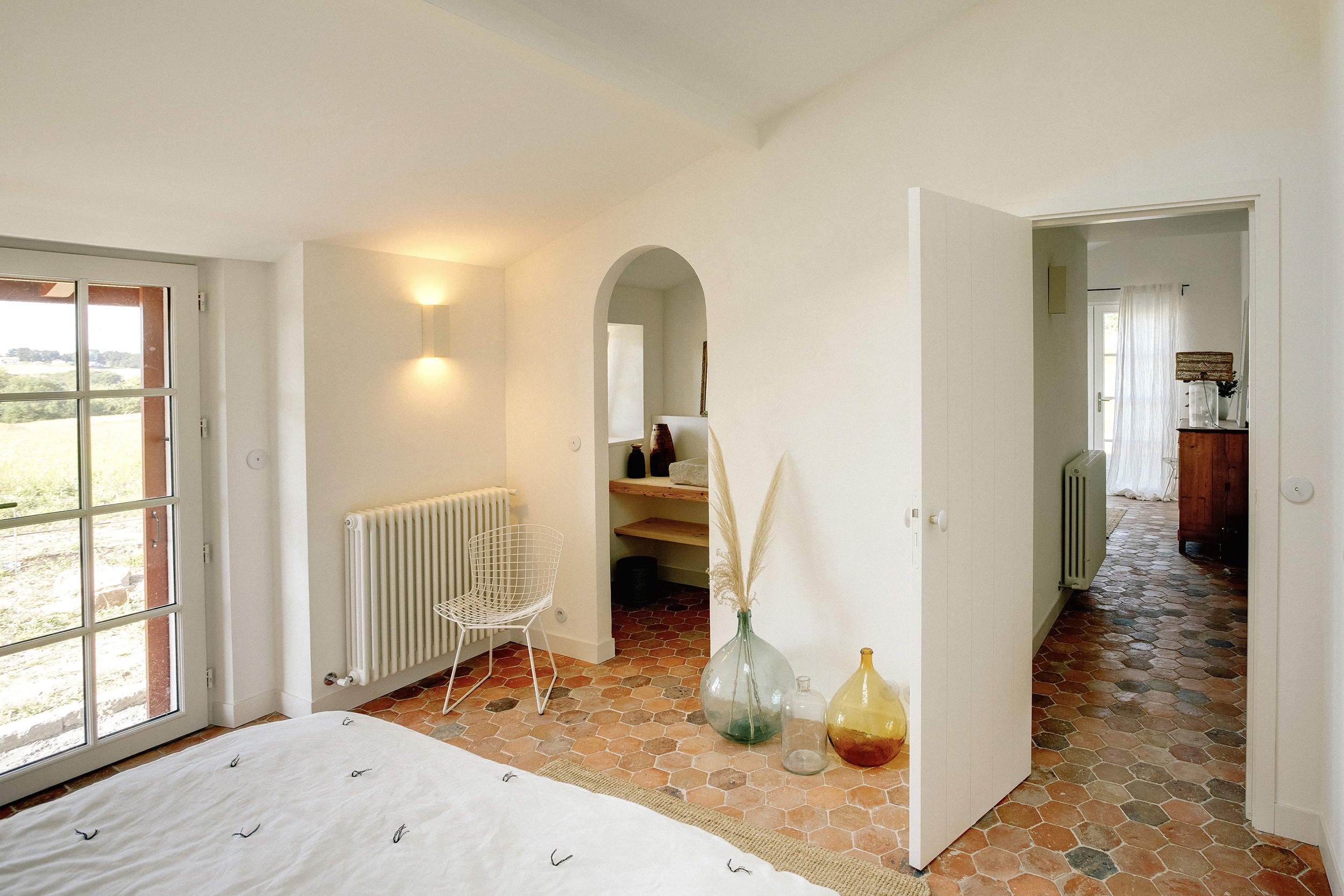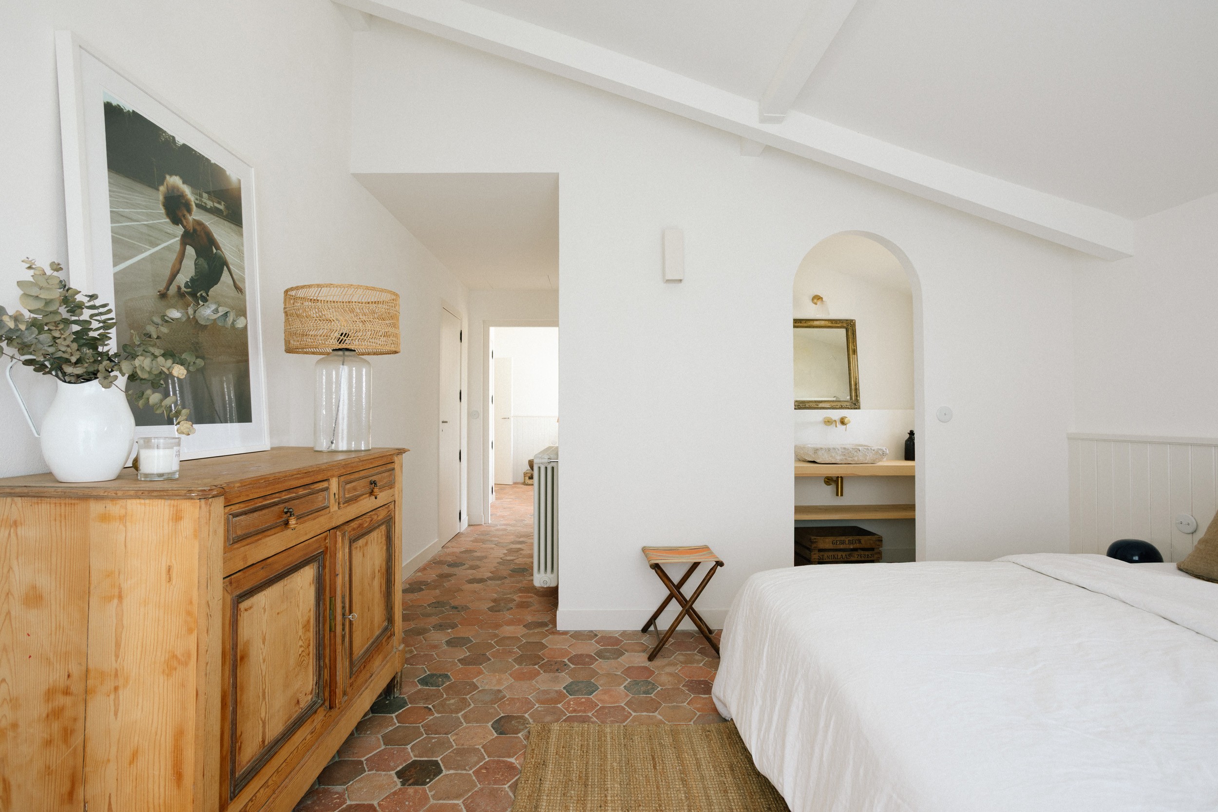 L’étage comprend quatre chambres supplémentaires, aménagées dans le même esprit de confort. Vous y trouverez aussi un bureau ainsi qu’un salon TV, offrant des espaces dédiés au travail, à la lecture ou à la détente. La maison est équipée du wifi satellite, d’enceintes Sonos et d’un abonnement CANAL+.