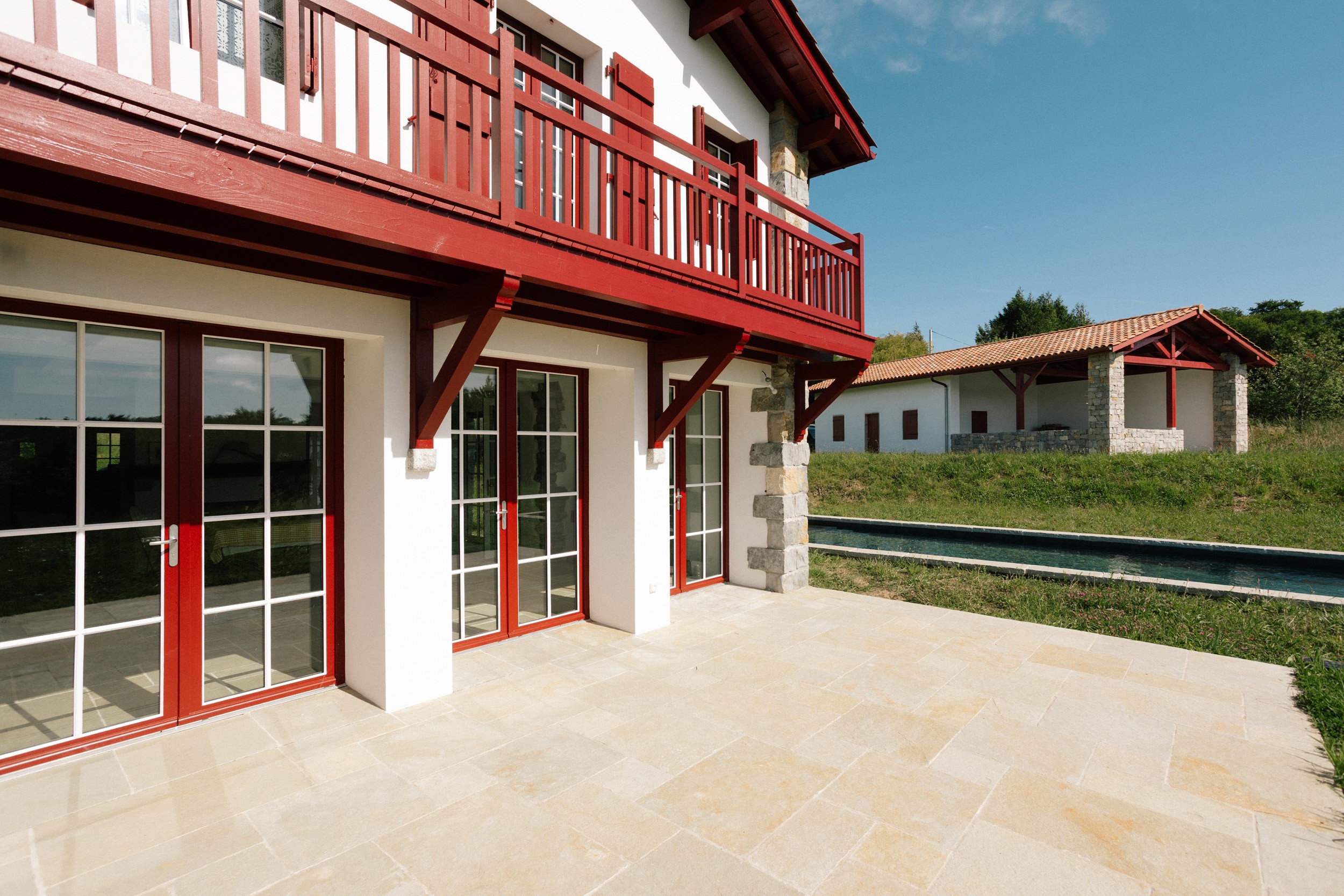 Cette ancienne ferme Labourdine rénovée, se situe à moins de dix minutes des premières plages, dans un environnement naturel de 2 hectares. Avec ses 300 m² habitables et ses volumes ouverts, elle accueille confortablement des séjours en famille ou entre amis.