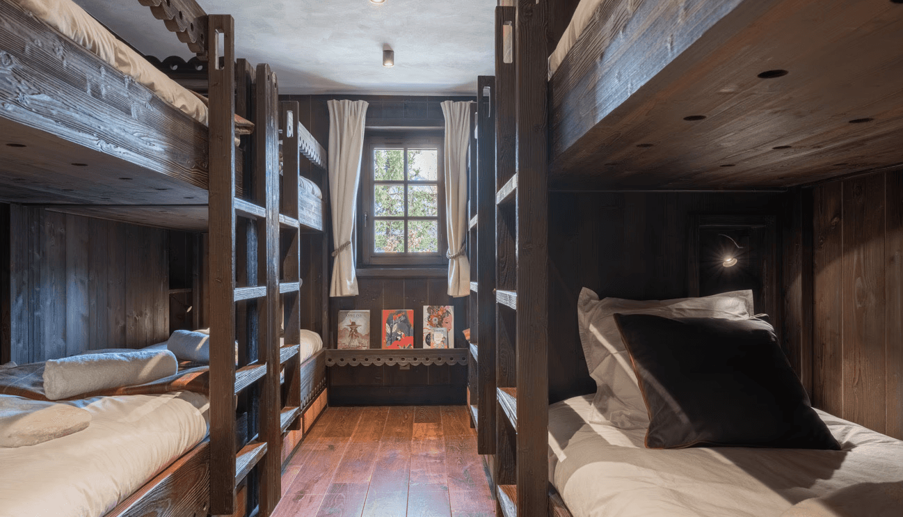 Dedicated to rest and tranquility, this level features three double bedrooms, each equipped with a king-size bed, a private bathroom, a minibar, and a safe. On the same floor, a spacious dormitory with eight single beds welcomes children or groups of friends in a friendly space, enhanced by a bathroom equipped with a bathtub and elegantly integrated storage.