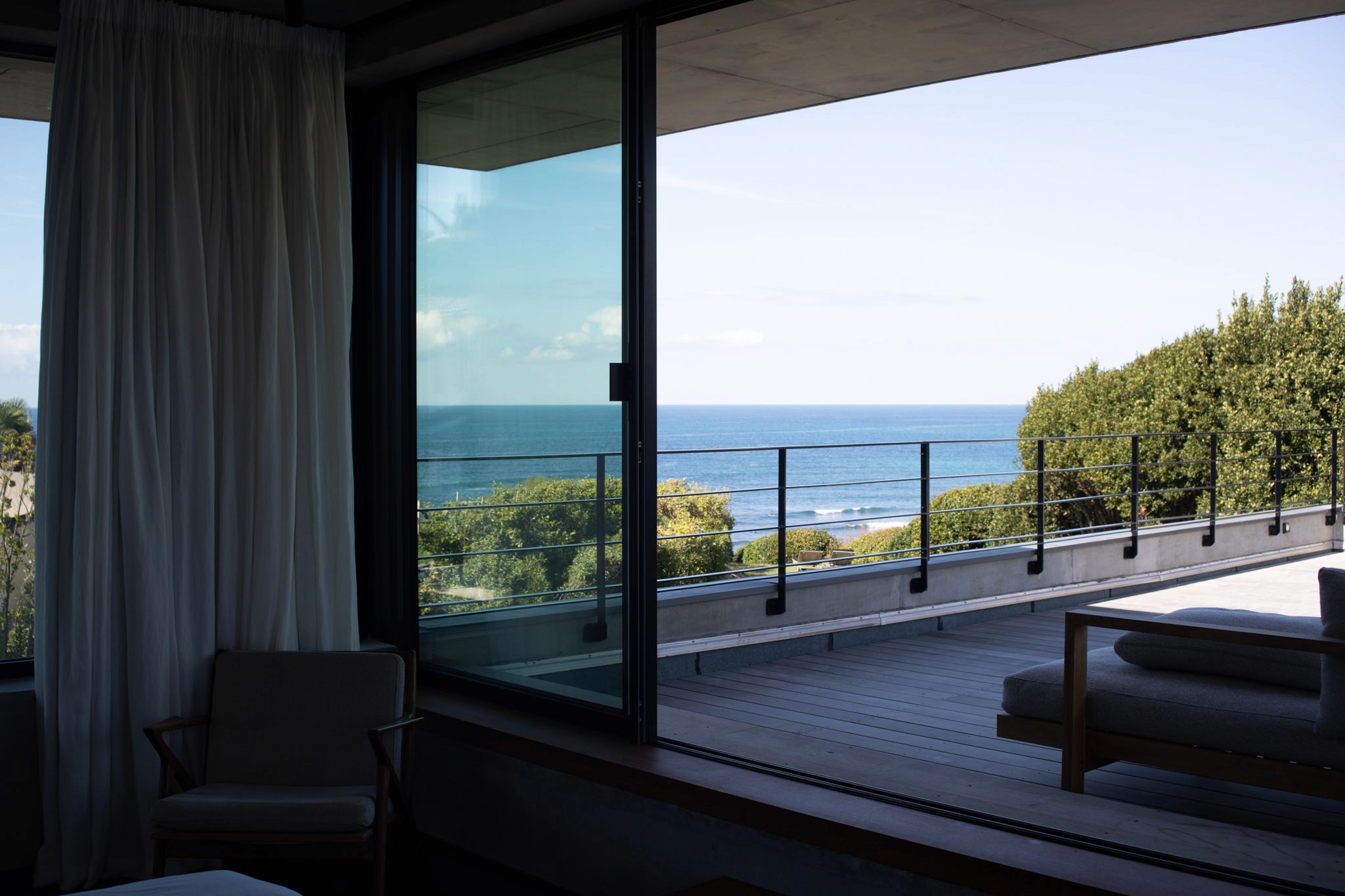 En première ligne au-dessus de la Côte des Basques, cet appartement offre une vue exceptionnelle sur l'océan, le phare de Biarritz et les montagnes.